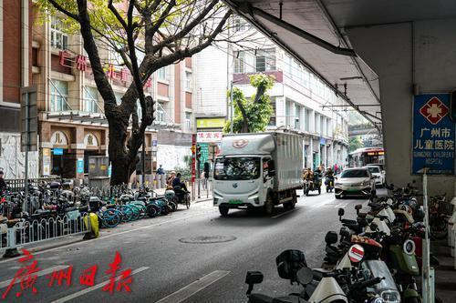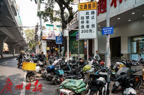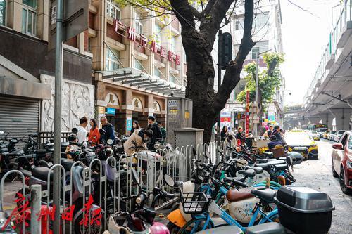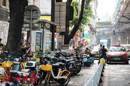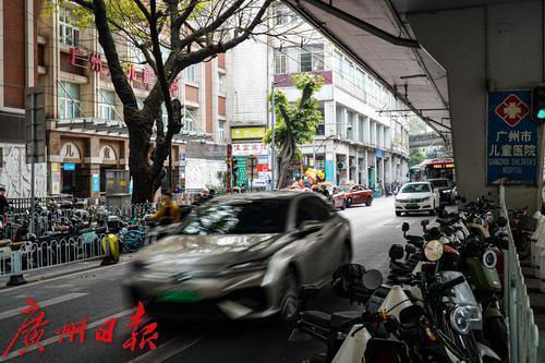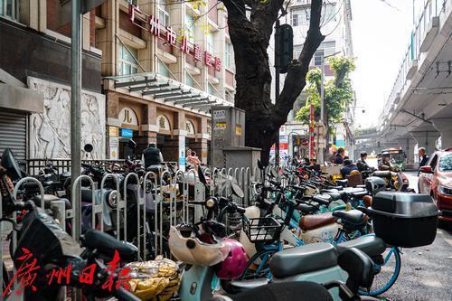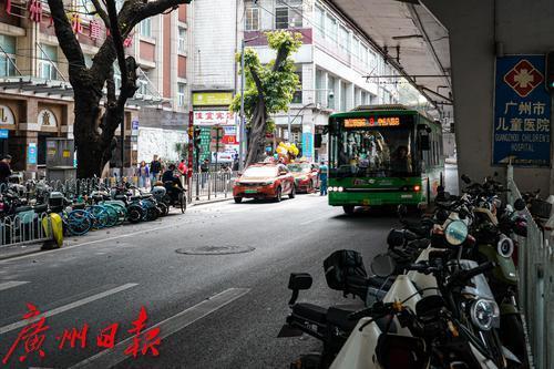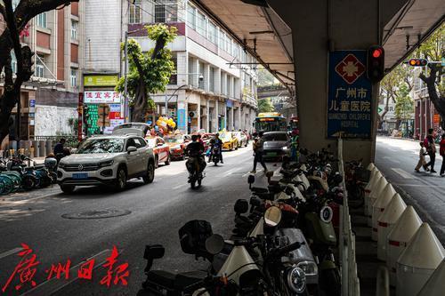 广州市儿童医院门口的人民路,道路两侧停满“电鸡”