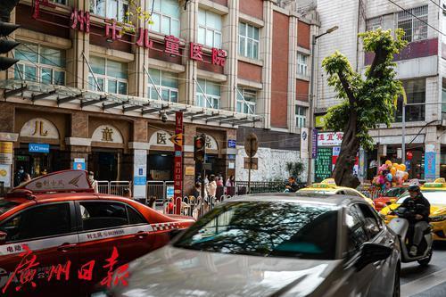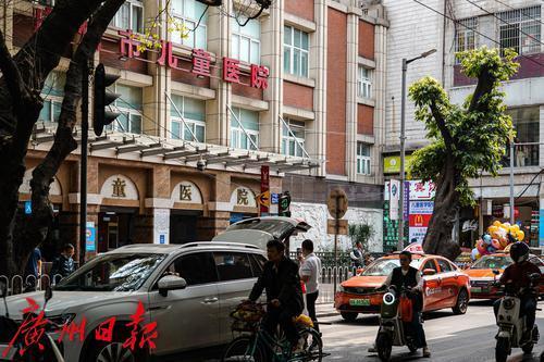 广州市儿童医院门口道路,虽有“禁停”标识牌,无奈道路狭窄,交通状况堪忧。