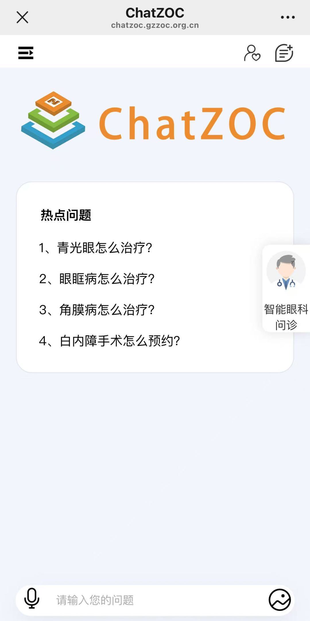 ChatZOC眼科大模型的手机预问诊系统