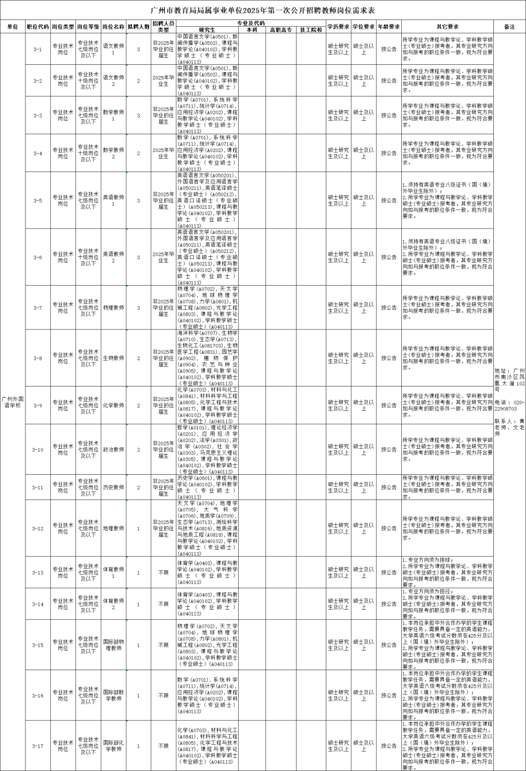 2月19日,广州市教育局发布广州市教育局直属事业单位2025年第一次公开招聘教师公告,决定于近期公开招聘196名事业编制内教师。其中,广州外国语学校拟招聘语文、数学、英语、物理等学科共17名事业编制内教师。