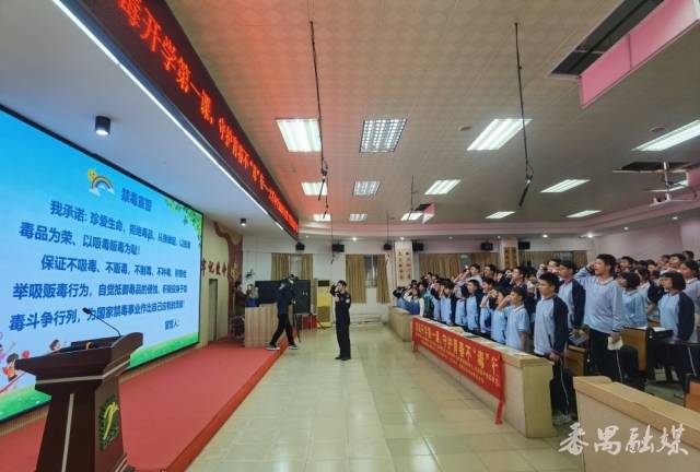 “我承诺:珍爱生命,拒绝毒品,从我做起……”伴随着禁毒民警的引领,全体学生庄严地举起右拳,齐声宣读禁毒誓词,誓言铿锵有力,表达了他们远离毒品、守护纯净生活的坚定决心。