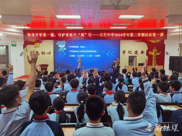 大石中学德育副主任汤丽华表示,这既是一堂禁毒知识课,又是一堂生命教育课。希望同学们通过这一节课,能够做到拒绝毒品,珍爱生命,用实际行动守护美好的青春年华。