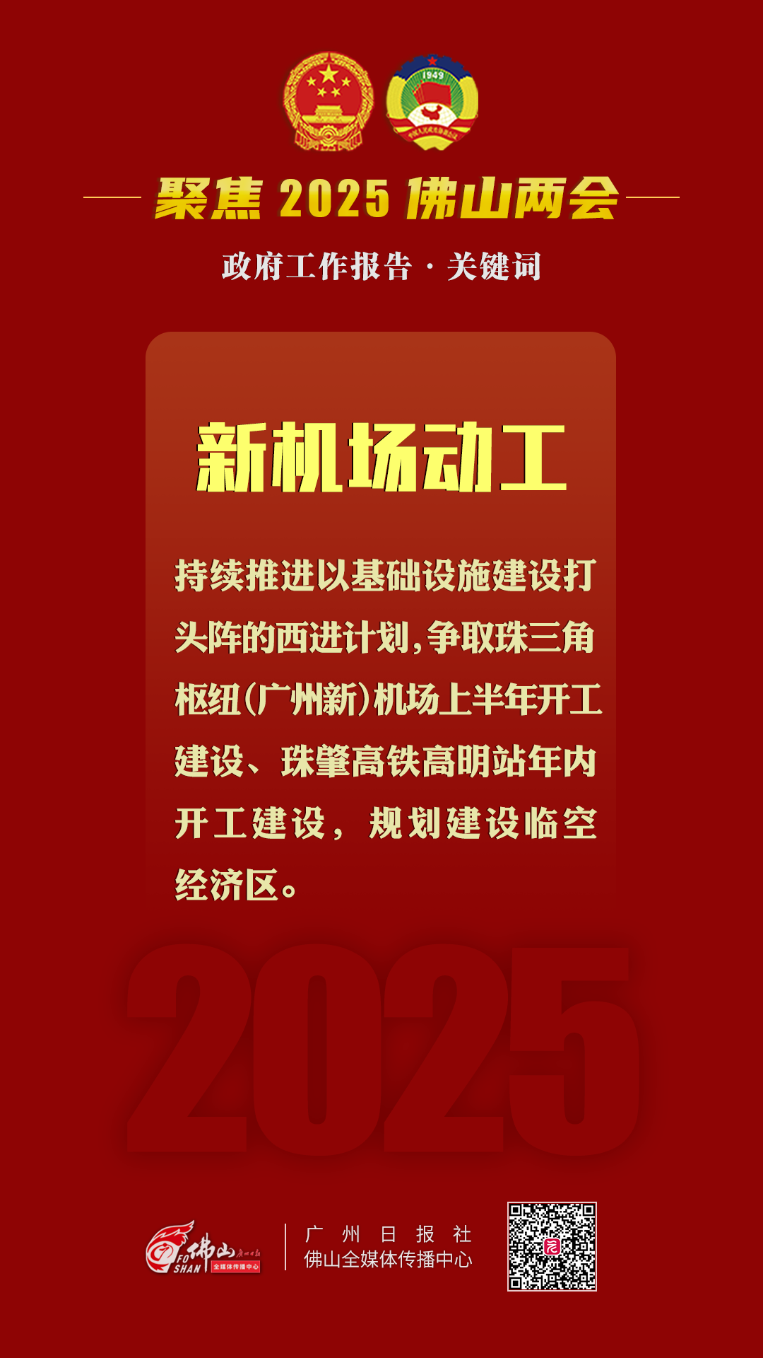 2月20日,佛山市第十六届人民代表大会第五次会议召开,佛山市市长白涛向大会作工作报告。2024年佛山总体的经济形势到底如何?面对高质量发展爬坡过坎的重大关口,佛山将如何以二次创业的奋斗姿态“再造一个新佛山”,推动经济社会和民生事业实现新跨越?广州日报社佛山全媒体传播中心以关键词形式,以最直观的方式深入解读政府工作报告的核心亮点。