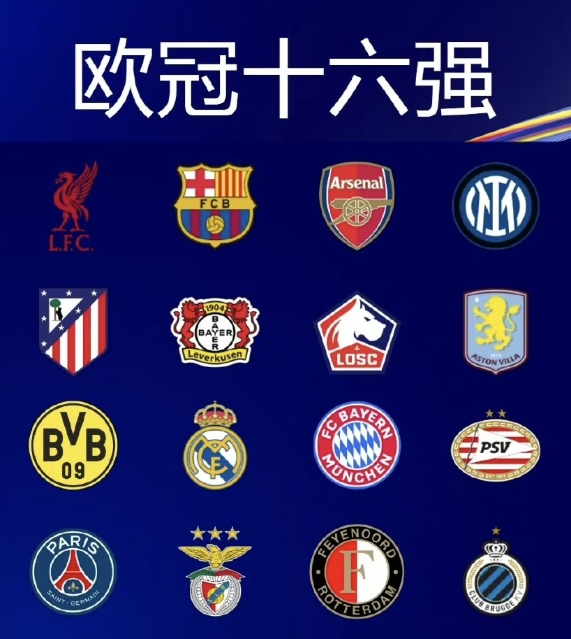 至此,本赛季欧冠16强全部出炉!12支球队来自欧洲5大联赛,英超、西甲、德甲均有3队,法甲2队,意甲1队,荷甲2队,葡超和比甲各1队。