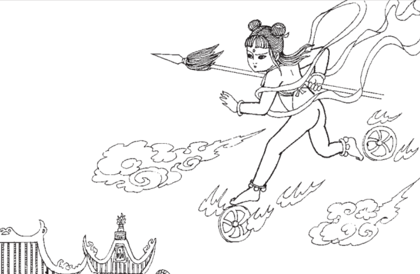 书中的小哪吒自出生以来只穿小肚兜,露着白白嫩嫩、胖胖乎乎的胳膊、腿儿,十分可爱。但莲花化身之后,他身上多了一件荷叶围裙,太乙真人还用剩下的荷叶给他做了一件漂亮的披肩,稚气之外更添几分英气。