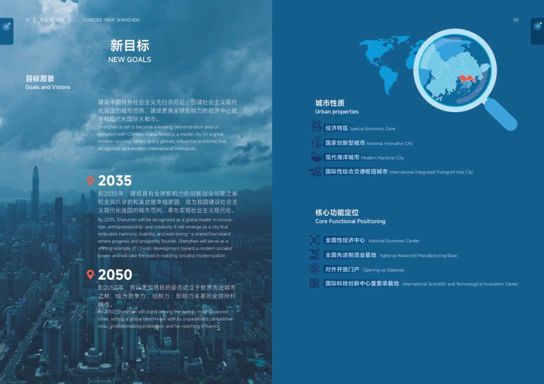 日前,深圳市人民政府通过“深圳政府在线”正式发布《深圳市国土空间总体规划(2021-2035年)》(以下简称“《总体规划》”)全文。该规划是深圳经济特区建立以来的第四版法定总体规划,也是首部多规合一的总体规划,为深圳未来中长期发展提供了宏伟蓝图。为了更直观形象地展示规划内容,深圳市规划和自然资源局制作了《总体规划》公众读本(中英文),预见2035年绚烂美好“新”深圳。