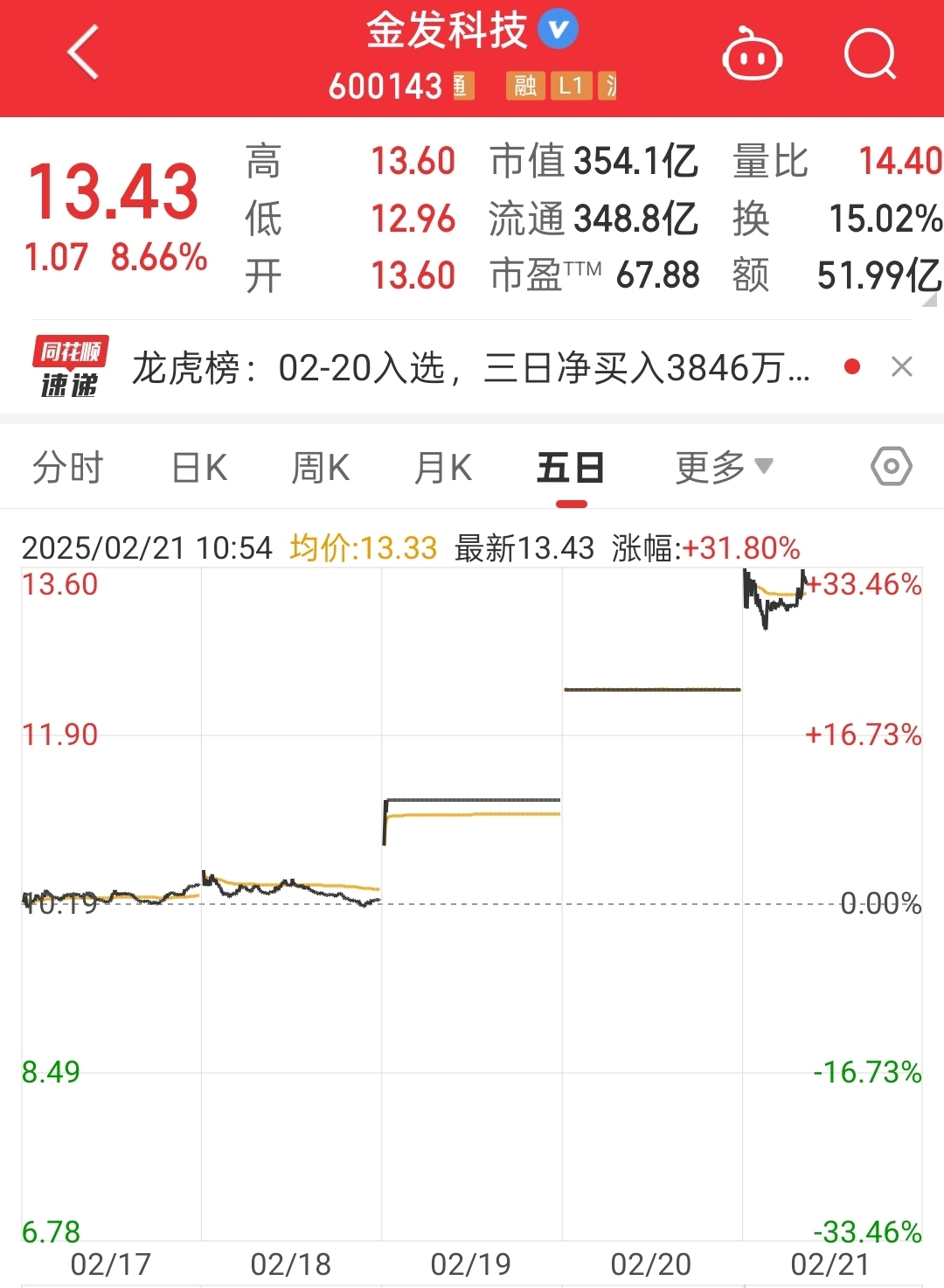 该公司股票于 2025 年 2 月 19 日、2 月 20 日连续二个交易日内收盘价格涨 幅偏离值累计超过 20%,根据中证指数有限公司发布的数据,截至 2025 年 2月 19 日,金发科技所处行业“橡胶和塑料制品业(C29)”静态市盈率为 24.57 倍,滚 动市盈率为 23.10 倍,其的静态市盈率为 93.57 倍,滚动市盈率为 57.50 倍, 其当前的市盈率与同行业情况有较大的差异。