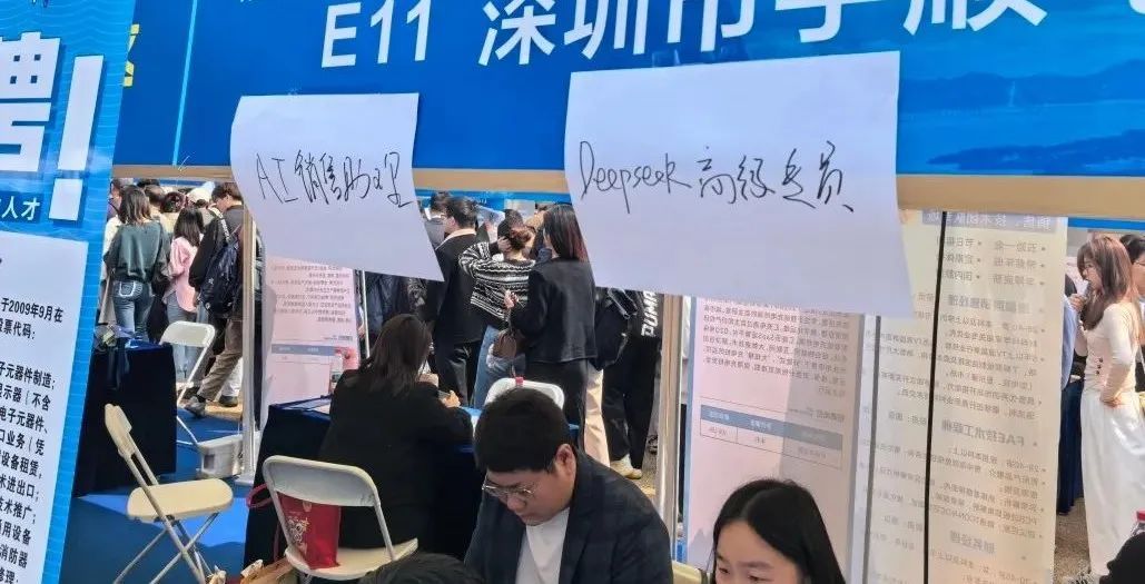某招聘会现场,企业在招聘“DeepSeek高级专员”的岗位。