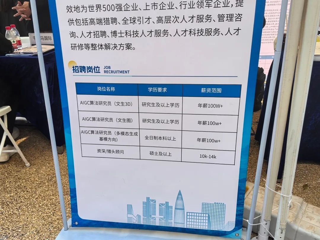此外,DeepSeek爆火让大模型人才在节后春招季炙手可热。2月18日,记者在深圳的一场大型招聘会上看到,人工智能岗位成为了顶流,现场就有不少企业放出了“DeepSeek高级专员”的岗位,还有AI销售助理、各种算法工程师等等,有一家企业的展板上,给AIGC算法研究员岗位开出100W+的年薪。