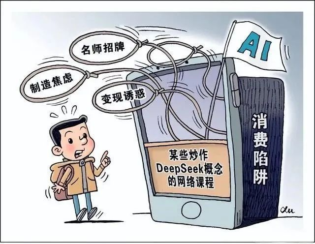 记者发现,不乏一些付费课程和社群获得了好评,但也有很多课程纯粹是在蹭流量、割韭菜。例如,一份《DeepSeek实操教程》售价25元,其中却掺杂着大量其他AI工具相关的内容,评论区有人表示“完全是大杂烩”。广东诺臣律师事务所高级合伙人郑子殷表示,AI热潮推动下,许多自媒体和网络平台看到知识付费的巨大商机,通过包装AI课程、制造焦虑情绪等手段吸引消费者购买;部分消费者对AI技术的了解不够深入,容易被夸大其词的宣传所误导。