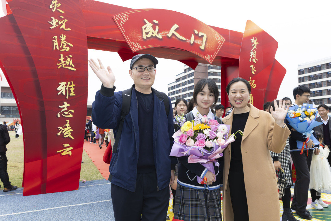 2月22日,广东广雅中学花都校区举行2025届高三成人礼暨百日誓师大会,全体高三老师和学生及家长共同参与。成人礼上,学生行冠笄之礼,家长为孩子们送上鲜花、别上成人礼徽章,老师为学生发放宪法读本并送上祝福。同学们在领誓人的带领下,共同宣誓。