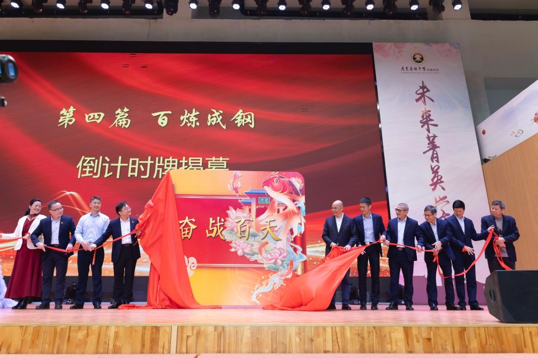 活动现场,广雅中学校长龙国华击鼓,并和党委书记何冠南共同为高考百日倒计时牌揭幕,正式拉开广雅中学高考百日倒计时的序幕。