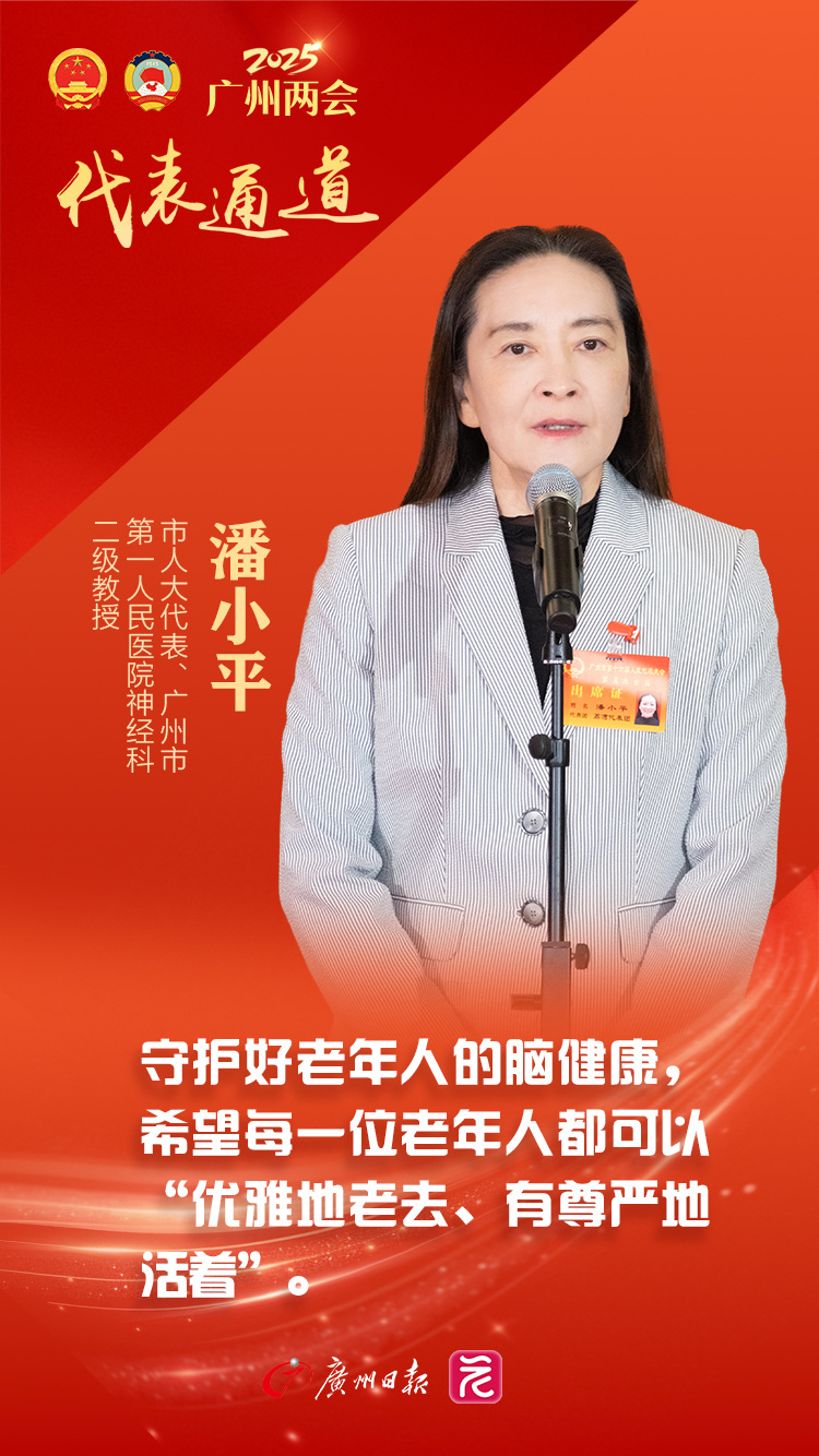 市人大代表、广州市第一人民医院神经科二级教授潘小平连续三年提议将脑健康体检纳入老年人群的健康体检。