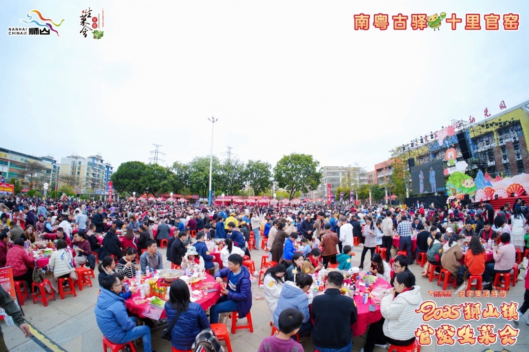 2月23日正月廿六,延续至今已有400多年历史的“官窑生菜会”在南海狮山凤山古庙举行。作为2025“享狮山 过大年”新春文体旅系列活动收官之作,今年的官窑生菜会创下历史规模之最,全天主会场筵开1000席,万人共享生菜宴。