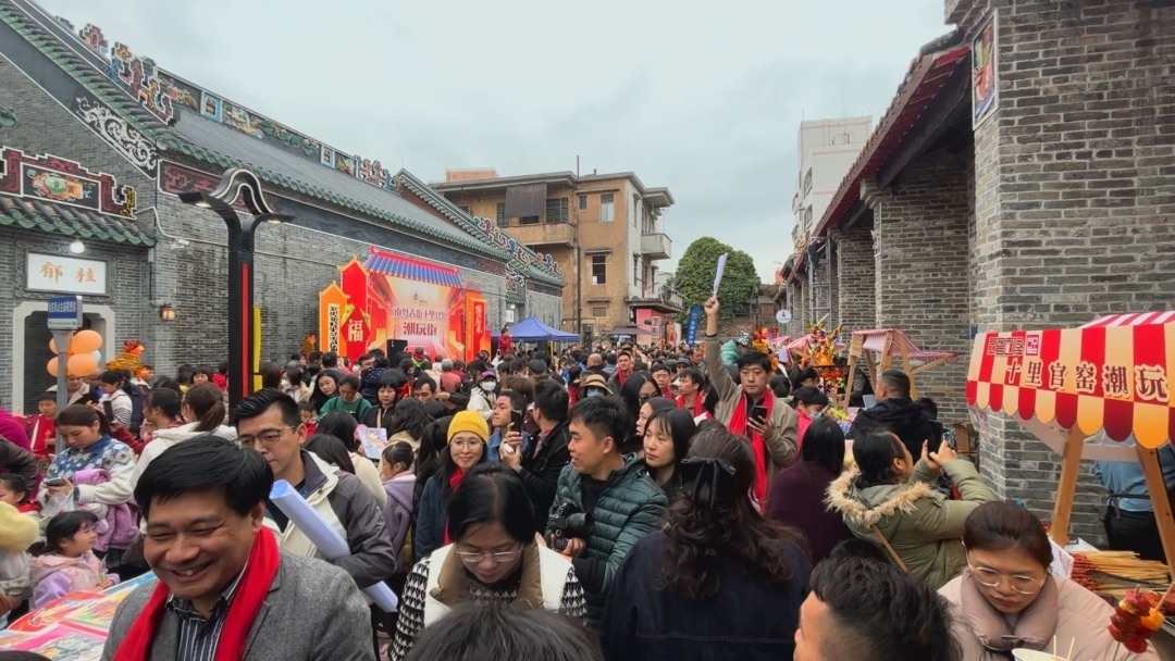 在今年活动中,南海狮团诞和官窑生菜会首次结合,两大非遗“同框”,千年古驿焕新。早上8时,12只“南海狮团”醒狮在凤山古庙开启巡游,2025年官窑生菜会及民俗庙会同步拉开帷幕。狮队威风凛凛,步伐矫健,庙会现场欢声笑语,热闹非凡。在“南粤古驿・十里官窑”五里段“古驿禅院”,往昔生菜会的热闹盛况得以重现,仿佛让人穿越时空,感受到了历史的厚重与民俗的魅力。