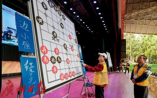 文化公园中心台上开设大棋盘唱挂棋,通过大棋盘现场直播后台赛事,让更多棋迷近距离感受比赛的激烈与精彩。