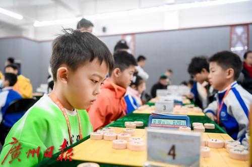 比赛在激烈进行中,参赛的小棋手在认真思考对策。