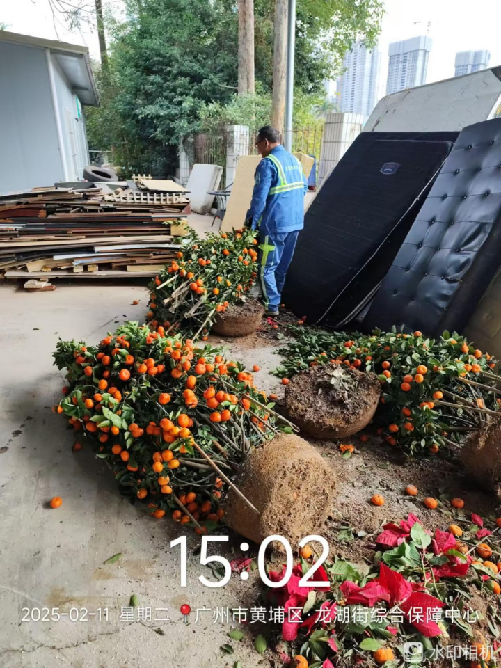 春节期间,年花年桔作为节日装饰为千家万户增添喜庆,但节后的大量废弃也带来相关压力。为此,龙湖街道综合发展中心积极响应《广州市生活垃圾分类管理条例》要求,在2025年春节前便提前部署,促进废弃年花年桔减量化、资源化、无害化处置,认真做好废弃年花年桔分类投放、分类收集、分类运输、分类处理工作,营造干净整洁的市容环境、和谐有序的生活秩序、喜庆祥和的节日气氛。