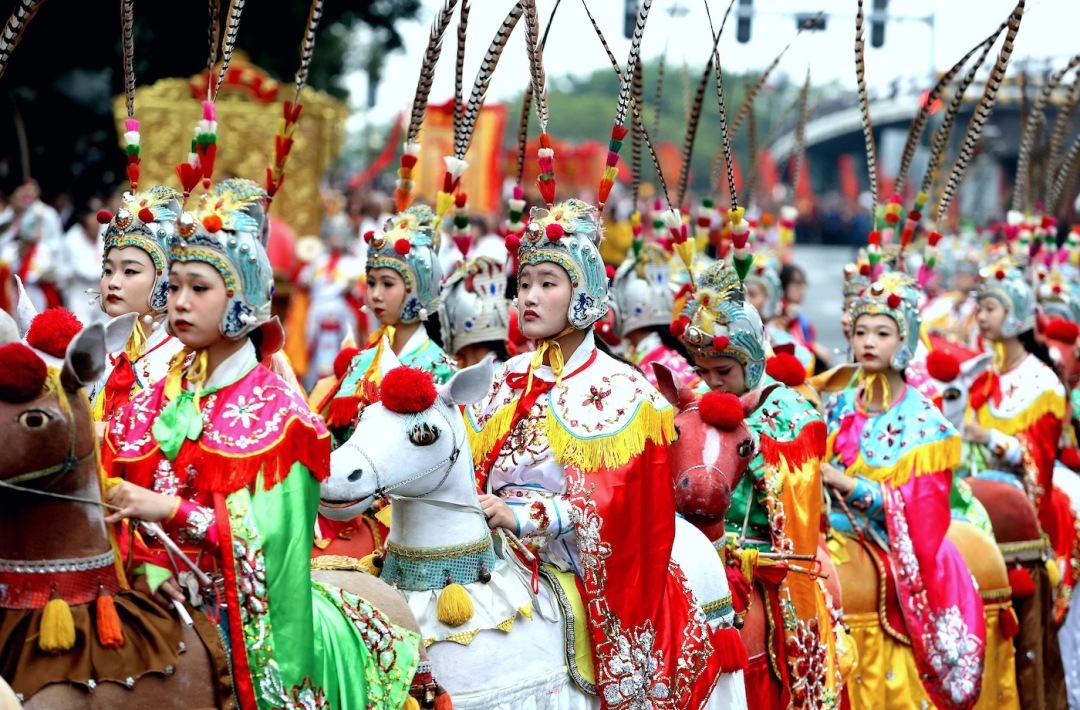 据统计,参加表演的人数达2500多人,长度达2公里,共有46项非遗表演节目。现场观众20多万人次,线上观众达到100多万人次。