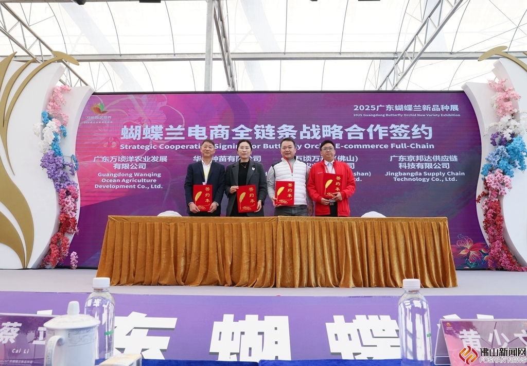 同时,广东万顷洋农业发展有限公司、华乐种苗有限公司、万顷万卉(佛山)农业有限公司及广东京邦达供应链科技有限公司还达成了“蝴蝶兰电商全链条战略合作”,将整合技术资源和产业资源,打造从种植生产、物流配送到市场营销的全产业链一体化运营模式,推动蝴蝶兰产业向数字化、智能化方向发展。