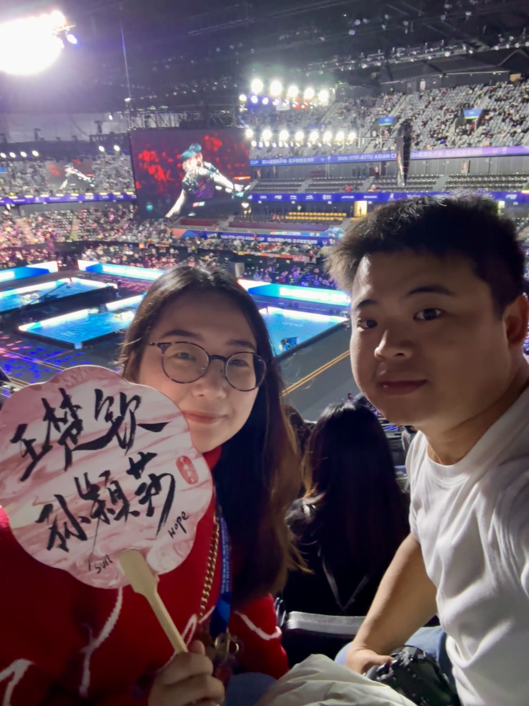 看了四天比赛,梁美琪告诉记者,“现场气氛太好了!和平时看电视转播完全不一样,场馆这么大,但是视野出奇地好,虽然做好心理准备现场会有很多加油声,但是真正参与其中,才感受到有多么的震撼,很享受啊!”有着这么完美的第一次线下观赛感受,夫妇二人决定,11月第十五届全运会在粤港澳三地举行的时候,他们也要力争到现场观赛。他们最支持的肯定是广东队,其次就是河北队、北京队。对于这些队伍的当家球星,梁美琪如数家珍。“广东队有林高远、河北队有孙颖莎、北京队有马龙和王楚钦。”