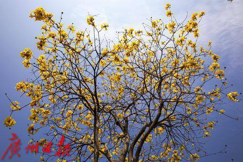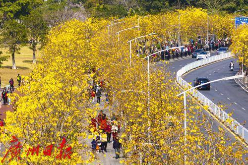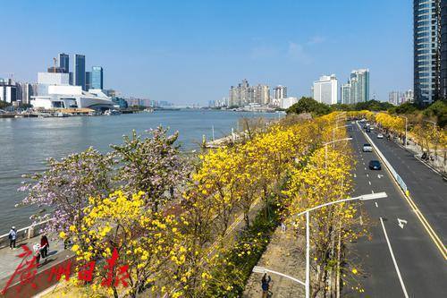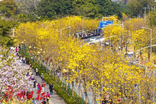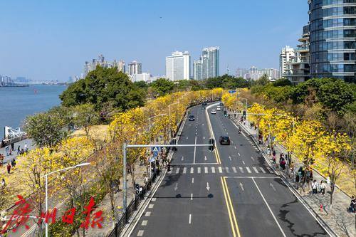 黄花风铃木盛放,海珠环岛路在春天变成“黄金海岸”。