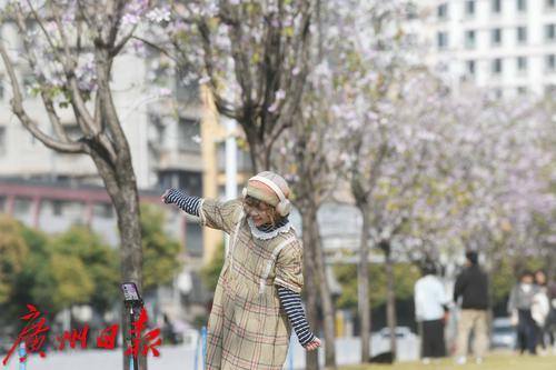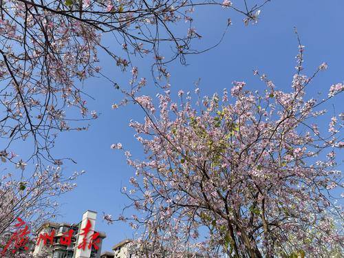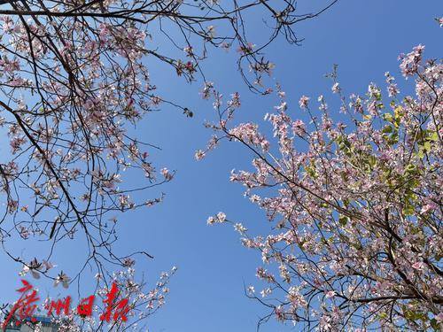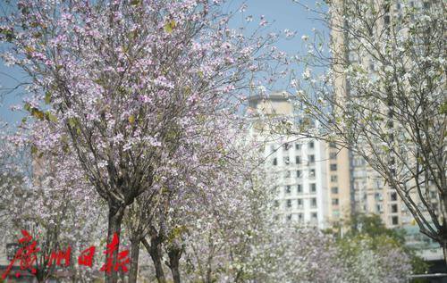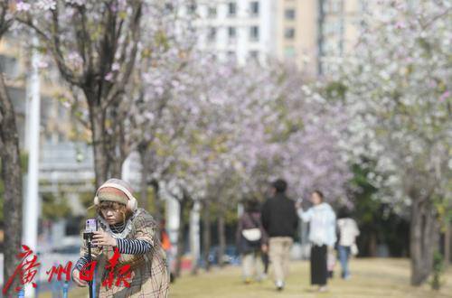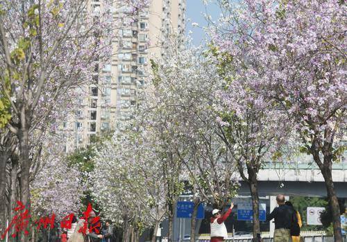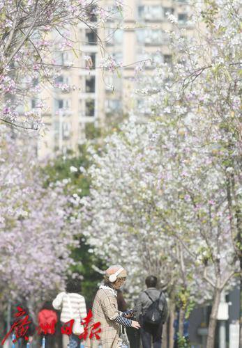 2月24日,广州海珠厚德路,紫荆花盛开,吸引了不少市民拍照“打卡”。