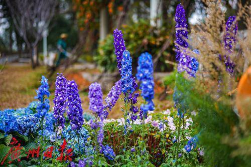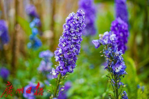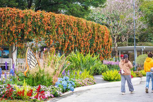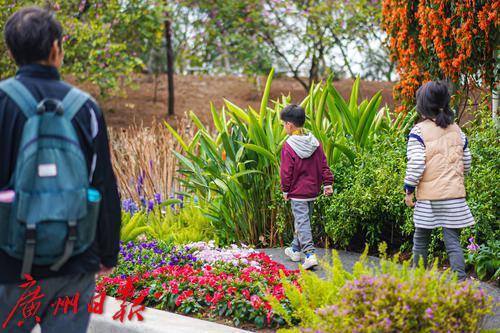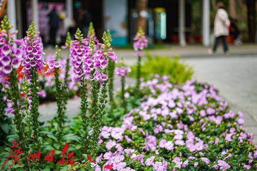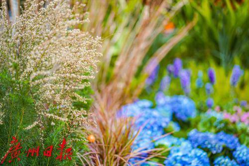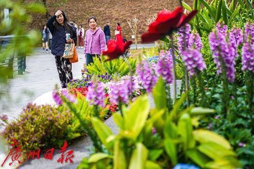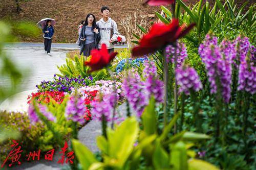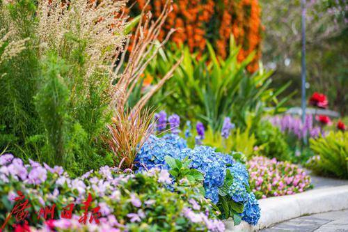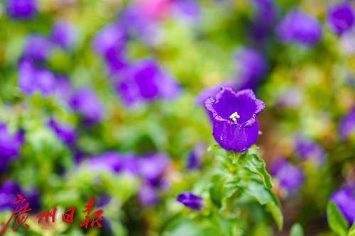 广州百花盛开的春日美景让人沉醉。在广州雕塑公园,园中的一处花坛宛如一幅绚丽的织锦,蓝、粉、紫、红……各色鲜花成团成簇、竞相绽放。这些花儿错落有致,色彩缤纷,仿佛壮丽云霞铺在眼前,在绿叶的衬托下,显得更加明艳动人。园中的游人路过此处,大都被这繁花盛景吸引,脚步放缓,“哇,好靓的绣球花。这边是风铃草……”他们一边仔细赏花,一边手机拍照留念。在一片小小花海中,人们沉浸式感受着广州春天的蓬勃生机。