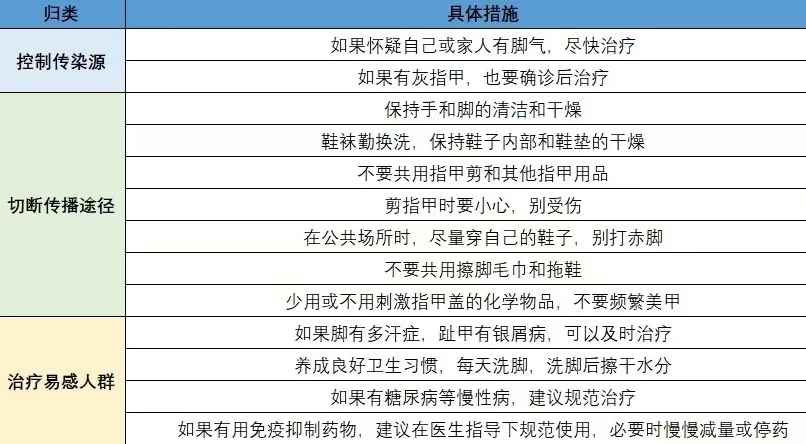 预防灰指甲,还可参考下列表格汇总的建议,帮助我们远离灰指甲烦恼。