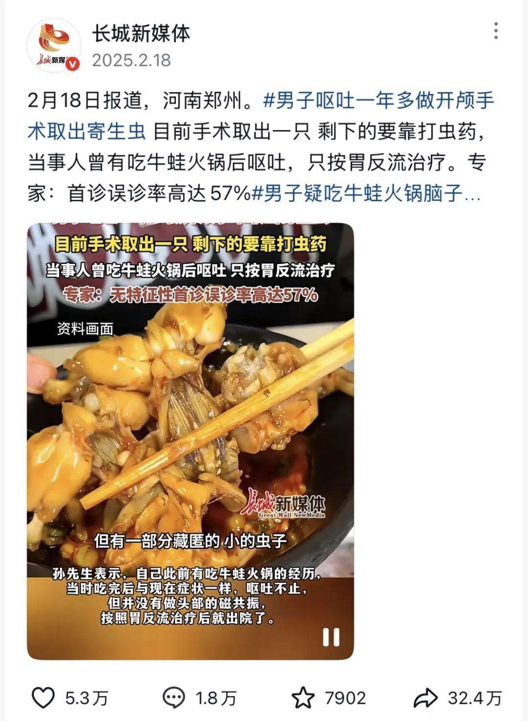 最近,网上有个案例让人触目惊心:一位网友呕吐了一年多,最后不得不开颅手术,结果发现罪魁祸首竟然是寄生虫!而他之前曾吃过牛蛙火锅。这听起来是不是有点毛骨悚然?牛蛙怎么会有寄生虫?如何预防寄生虫感染?