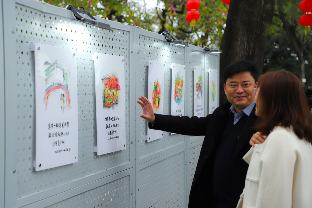 广州以其独特的岭南韵味吸引着各地游客。本次展览最引人注目的是“这里是广州·白云”系列漫画,小林老师用蘸满乡情的画笔,用幽默而深刻的内涵,通过简约的线条勾勒出广州自然风光、岭南文化、城市风貌及美食特色及风土人情,生动展现出“羊城”独特的城市温暖与烟火气息,表达出对生活的深刻感悟与美好追求。