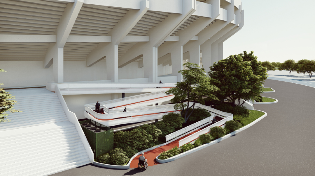 设计师表示,天河体育中心体育场观众看台区将增设永久性轮椅坡道,作为残特奥会开幕式轮椅观众入场和疏散的重要通道。赛后,轮椅坡道成为连接二层风雨跑道和首层环场跑道的无障碍通道,让所有人安全自主、平等便捷地参与体育运动。