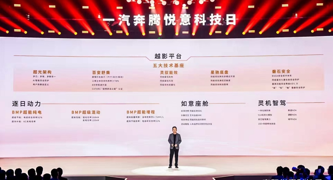 一汽奔腾悦意技术品牌主理人杨兴龙表示,高质价比及能提供多元化价值的新能源车才是当前消费者所需,一汽奔腾从造车者思维转变为用车者思维,让技术从“可用”走向“好用”。