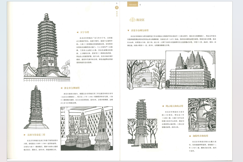 与其他以照片作配图介绍古塔的书不同的是,这本书里的4000千多座古塔都是陈泽泓手绘,作者采用黑白线条,以白描方式表现中国古塔,追求与传统古塔相配的韵律之美、典雅之美的视觉效果。