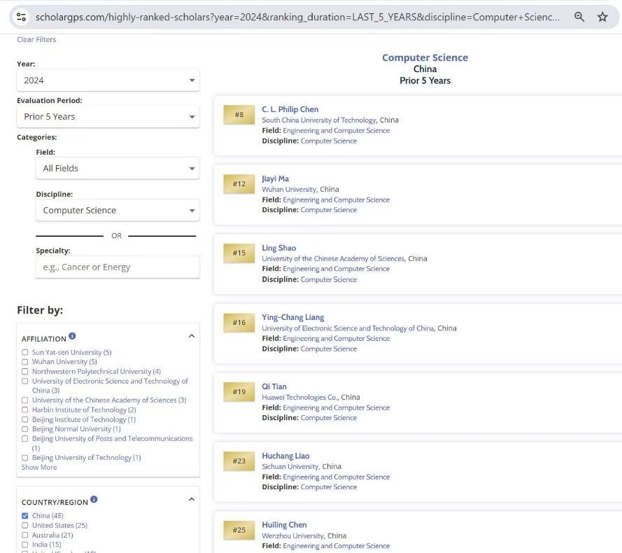 ScholarGPS汇集了全球各学科领域3000多万名学者的信息档案以及海量论文、专利、书籍大数据资源。该机构应用人工智能、数据挖掘、机器学习和其他数据科学技术,对学者的研究成果(发表论文数)、影响力(引用次数,已排除自引)和论文质量三项指数进行综合分析,对全球超过3000万学者和55000家机构在各个领域、学科和专业方面(14个领域、177个学科及超过35万个专业)的卓越表现进行排名。