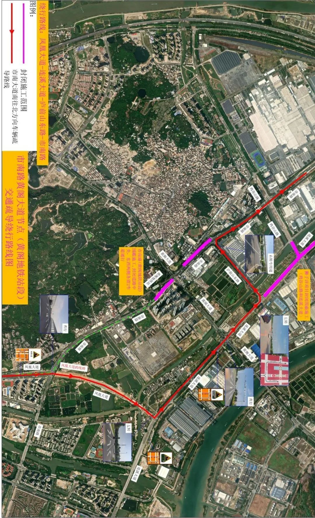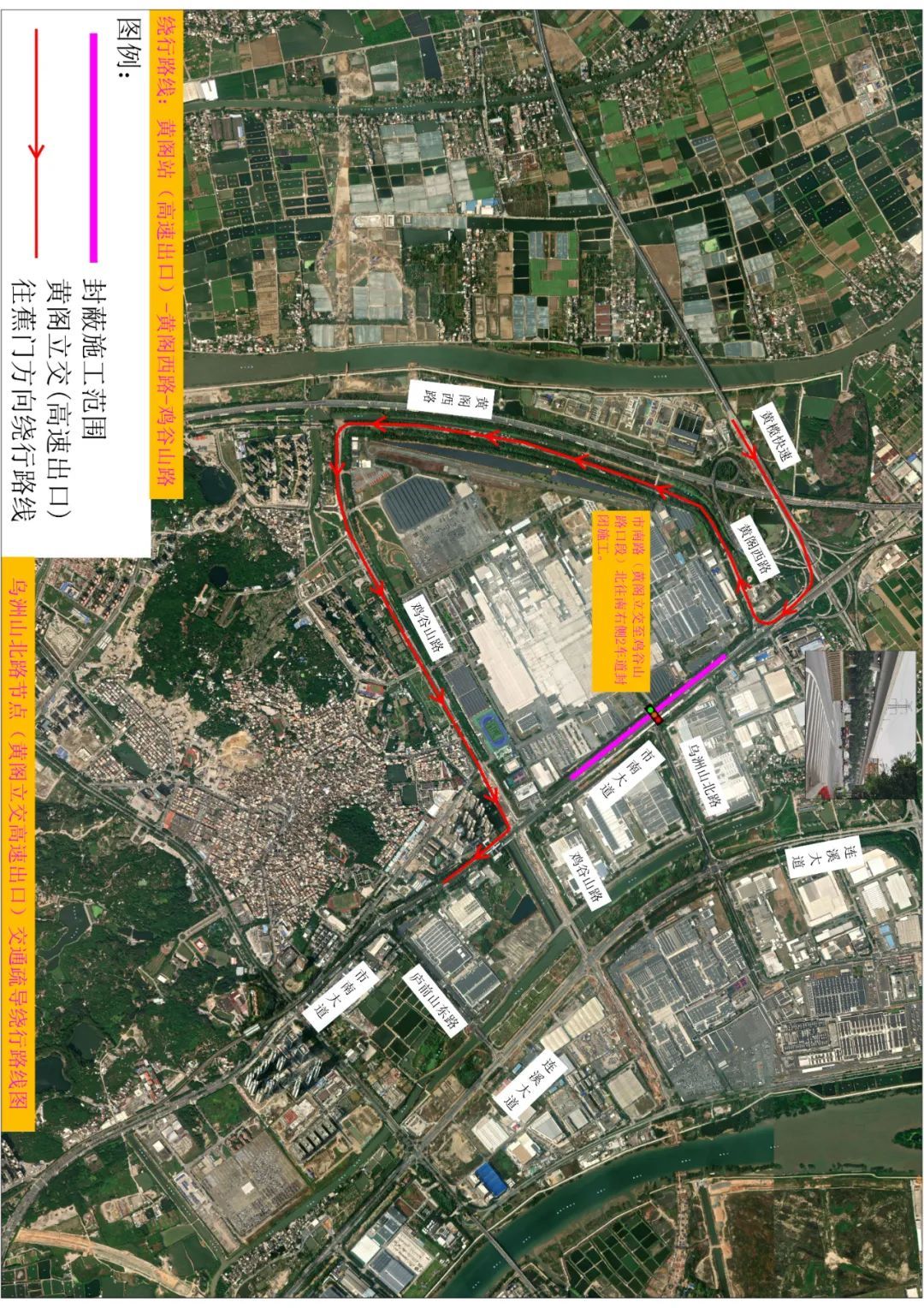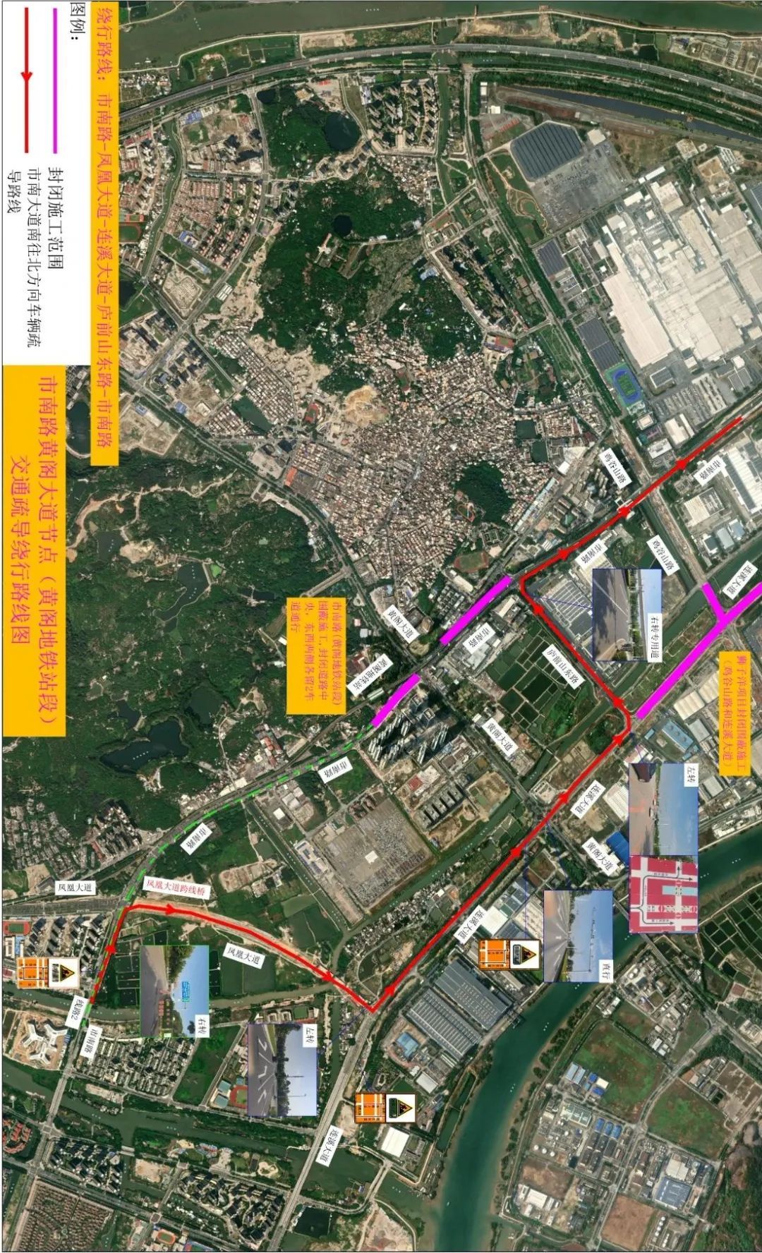 从黄阁立交高速出口至市南路的车辆可这样绕行: