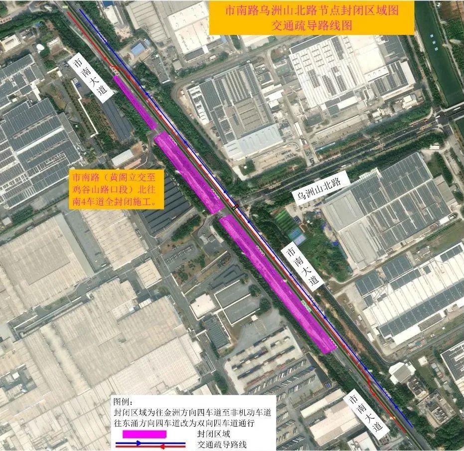 △市南路乌洲山北路节点封闭区域图/交通疏导路线图
