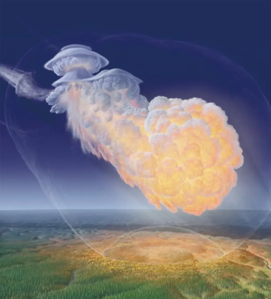 图说:1908年通古斯大爆炸事件示意图。图源:中国科学报
