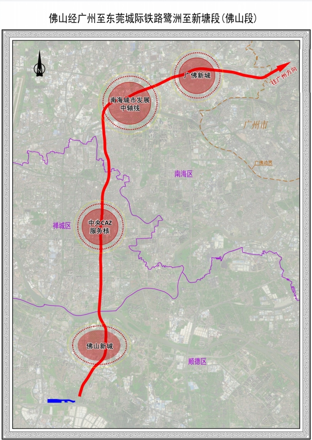 佛山经广州至东莞城际铁路鹭洲至新塘段(佛山段)是串联佛山中心城区的一条新城市轨道交通动脉,对佛山城市建设和城市发展格局具有重要意义。本次公示显示,佛山经广州至东莞城际铁路鹭洲至新塘段(佛山段)途经佛山顺德区、禅城区和南海区,分别串联乐从镇、石湾镇街道、祖庙街道、桂城街道、大沥镇,将佛山最繁华的佛山新城、禅城主城区、千灯湖片区以及广佛新城串联在一起。