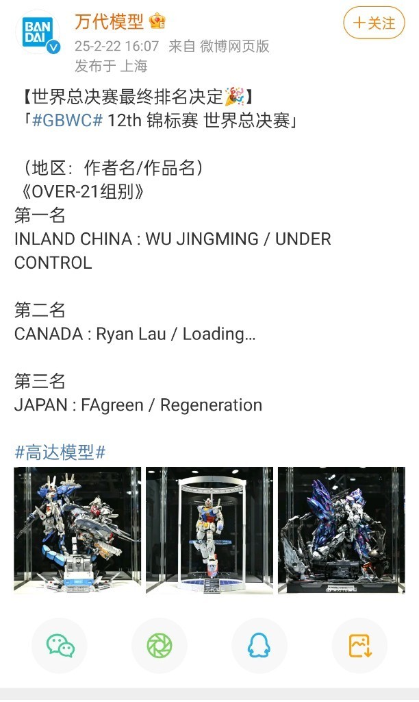 2月22日,GBWC(GUNPLA BUILDERS WORLD CUP,“高达模型王世界杯”)在日本落下帷幕,中国选手吴锦明在OVER21组别(公开组)斩获世界冠军。