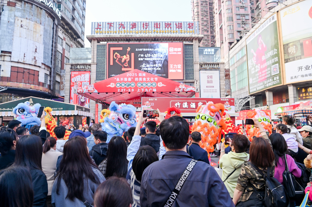 2月27日下午,伴随着醒狮开场,“食在广州 味在西关”永不落幕的美食文化节在荔湾区上下九广场开幕。本次美食文化节由广州市荔湾区振兴西关美食工作组织委员会主办,汇聚了竹溪酒家、侨美集团、鹅公村、名盈轩酒家、温祈福酒家、荔银肠粉、吴财记、老西关濑粉、南信甜品、百花糖水等众多深耕荔湾多年的传统美食商家,涵盖烧鹅、乳鸽、云吞面、双皮奶、濑粉、糖水、碗仔翅、糯米饭、牛杂、咸煎饼、干炒牛河等各式本土特色美食。2月27日至3月9日,众多餐饮企业集结上下九广场,亮出拿手好菜,以飨广大市民游客。
