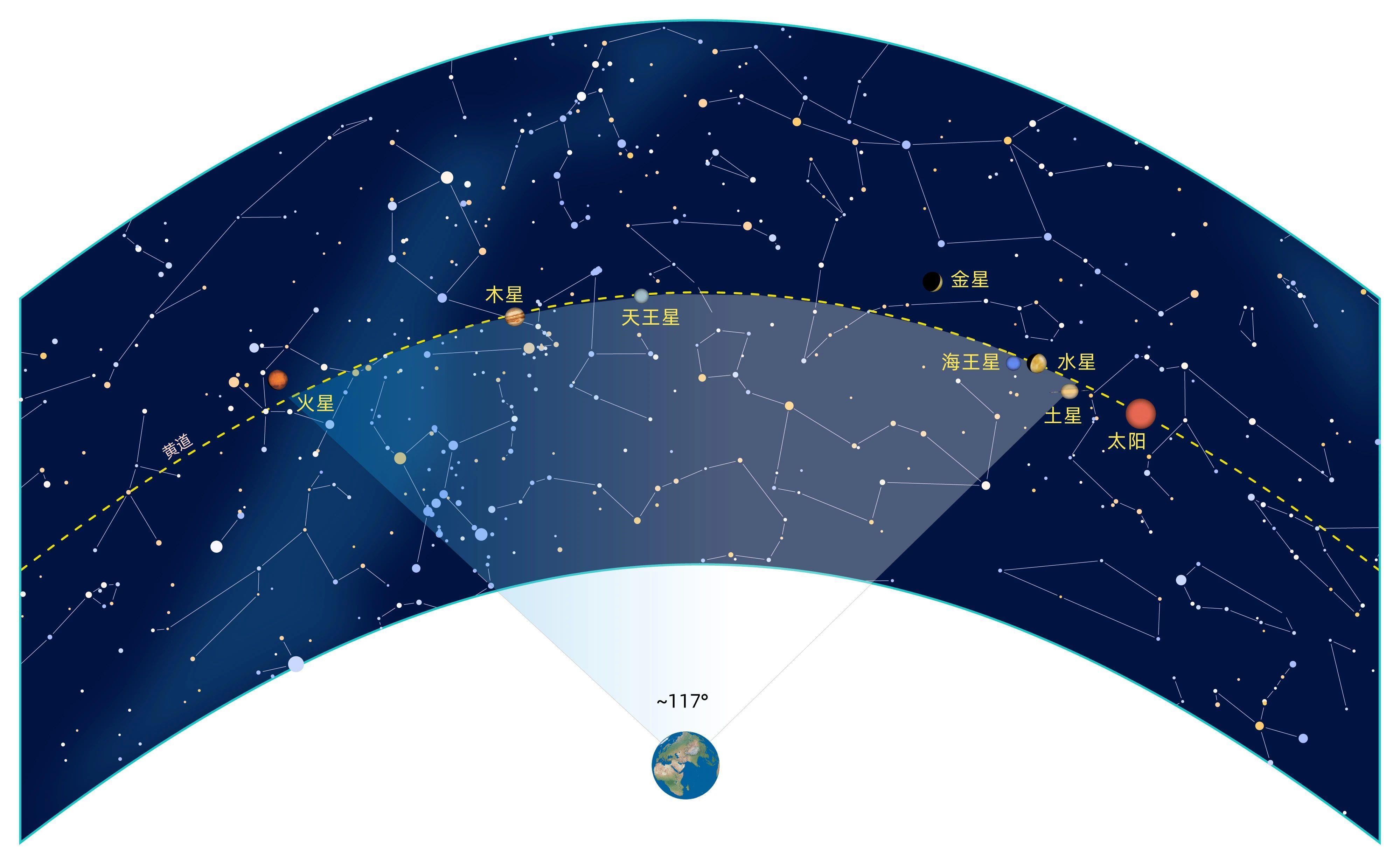 还有海王星的亮度只有7.8等,需要借助大口径天文望远镜的帮助,另外它的高度角也很低,同时有低空尘埃的影响,观测海王星也很有挑战性。所以对于社会公众来说,所谓“七星连珠”,真正肉眼可见的大概率只有金星、木星、火星三颗行星。