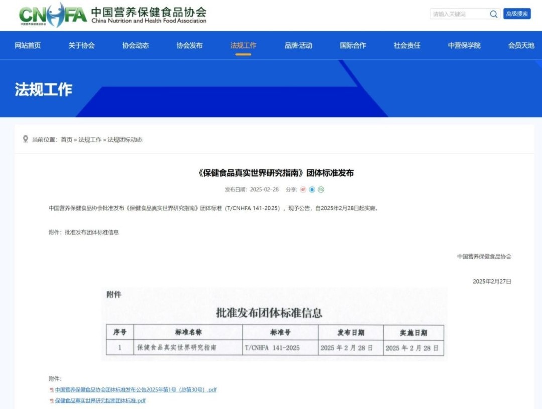 2月28日,中国营养保健食品协会正式发布行业首个真实世界研究标准——《保健食品真实世界研究指南》。这一标准由中山大学公共卫生学院、中国标准化研究院、中国营养保健食品协会保健食品研发专业委员会以及汤臣倍健主要牵头起草,历时3年制定而成。它参考了药品领域的真实世界研究体系,旨在为保健食品上市后的功能与安全性评价提供科学方法和技术指导,填补了行业在该领域的空白,开启了科学营养的循证新纪元。