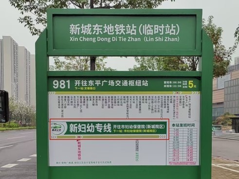 线路采用6~8米纯电动公交车,车头摆有“新妇幼专线”车头牌,方便市民识别车辆。