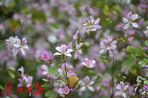 春日百花开,花城广州处处可见似锦的繁花。黄花风铃木、木棉花、格桑花、虞美人……宫粉紫荆也进入了一年当中开得最盛最好看的时候。走在广州的街头,一抬头就能看到一树的紫荆花随风摇曳着,走在花树下,心情都不自觉地惬意了起来。