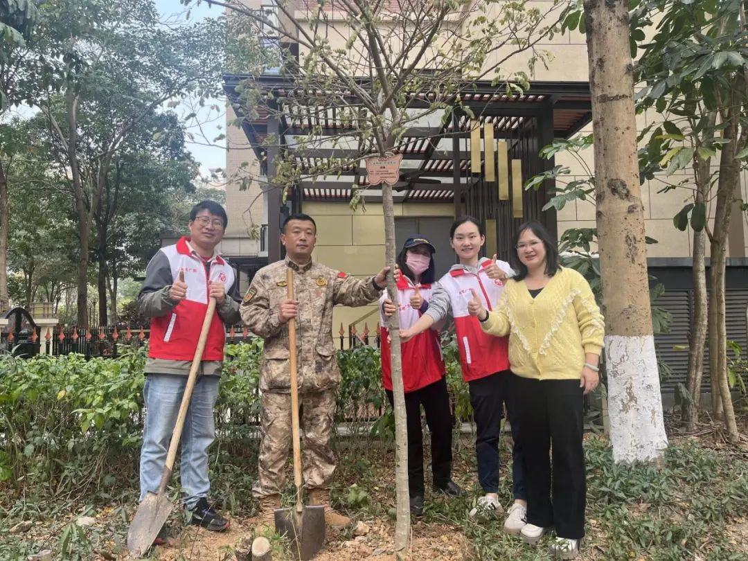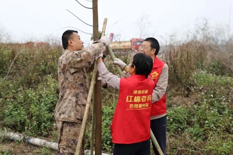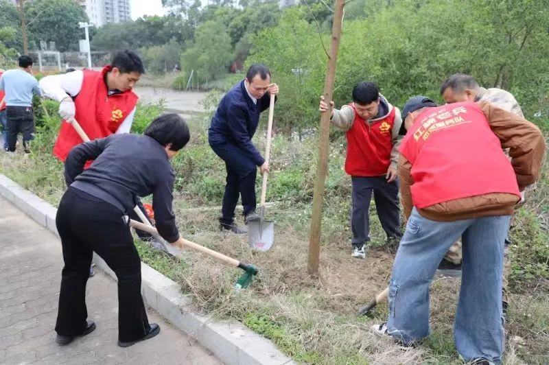 2024年,港湾街道在绿美行动中种植树木3857株,超任务指标2倍数量完成。今年,港湾街道同样深入推进植树造绿工作。为成功举办本次活动,港湾街道提前筹备,多次召开植树相关工作会议,密切部署,广泛动员,在辖区内营造良好的“植绿”氛围。活动前一天,港湾街道在芦湾村率先开展乡村绿化行动,携手村党总支部、相关共建单位党支部,以及现役军人家属代表、红棉老兵代表、环卫工人等,用实际行动让“绿水青山就是金山银山”的理念落地生根。