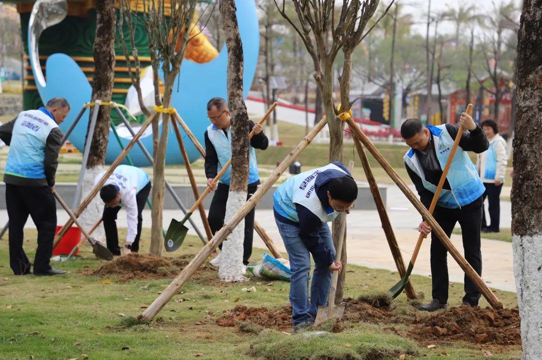甘雨时降,万物以嘉。今年3月12日,是我国第47个植树节。为贯彻落实省委关于推进绿美广东生态建设有关部署,持续深化“乡村绿化 暖南先行”行动,2月18日,港湾街道开展“党建引领聚合力 浪漫港湾绿美行”2025年港湾街道百千万工程植树活动,以实际行动吹响新年绿化“第一哨”。区委组织部有关领导、港湾街道主要领导、班子成员、街道大党工委成员单位相关领导,街道相关科室负责人,以及辖内各村(居、场)党组织第一书记、书记、“两委”干部共五十余人参加活动。