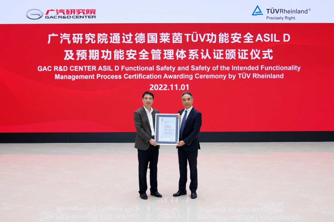 (广汽获颁德国莱茵TÜVISO26262功能安全和ISO21448预期功能安全管理体系证书)