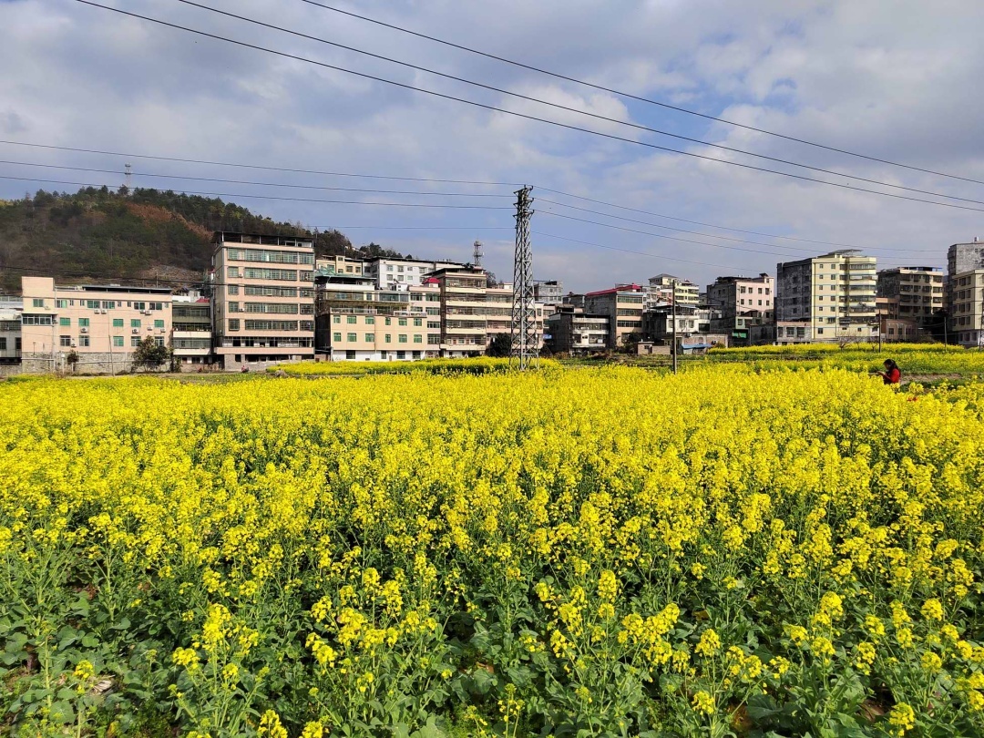 初春的韶关乐昌市梅花镇三和村,一片金黄的油菜花海在微风中摇曳,花香四溢,勾勒出一幅生机勃勃的春日画卷。作为梅花镇万亩油菜花的观景点之一,三和村的油菜花海每年都吸引着大批游客前来观赏。花海中,蜜蜂忙碌地采蜜,蝴蝶翩翩起舞,金色的花浪在阳光下熠熠生辉,仿佛一片金色的海洋。微风拂过,花香四溢,沁人心脾,令人陶醉其中。