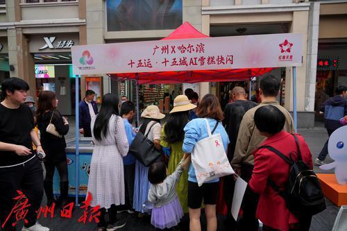 在广州北京路现场看到,广州X哈尔滨“十五运·十五城”AI雪糕快闪成为市民热门打卡点。据悉,现场游客与十五运倒计时牌合影,并带话题#十五运AI雪糕双城快闪#发任意社交平台,即可免费领取十五运AI雪糕1份。